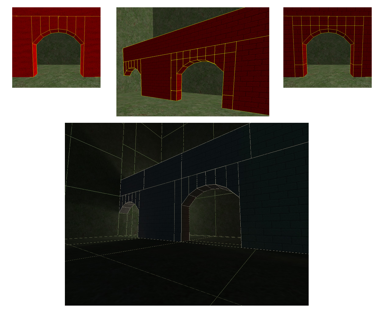 Простейшая карта состоит из 6 брашей - пол, потолок и 4 стены, разделена она будет вот так. Один прямоугольник соответствует единице wpoly.