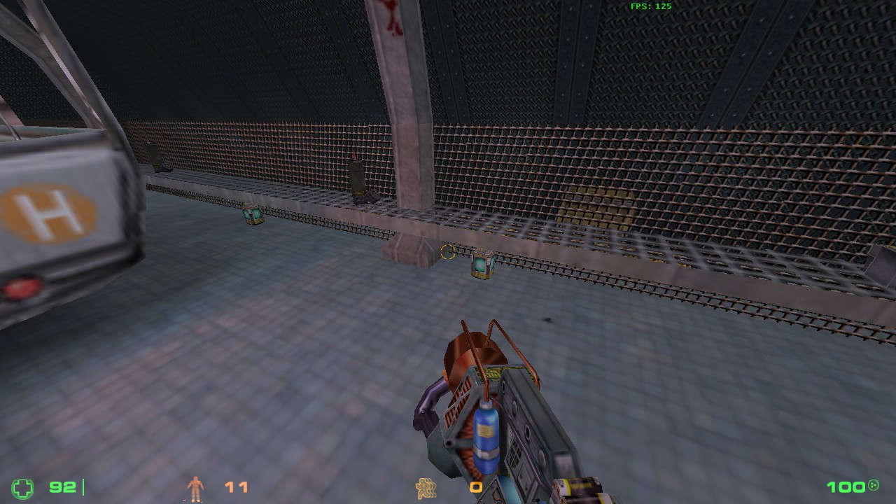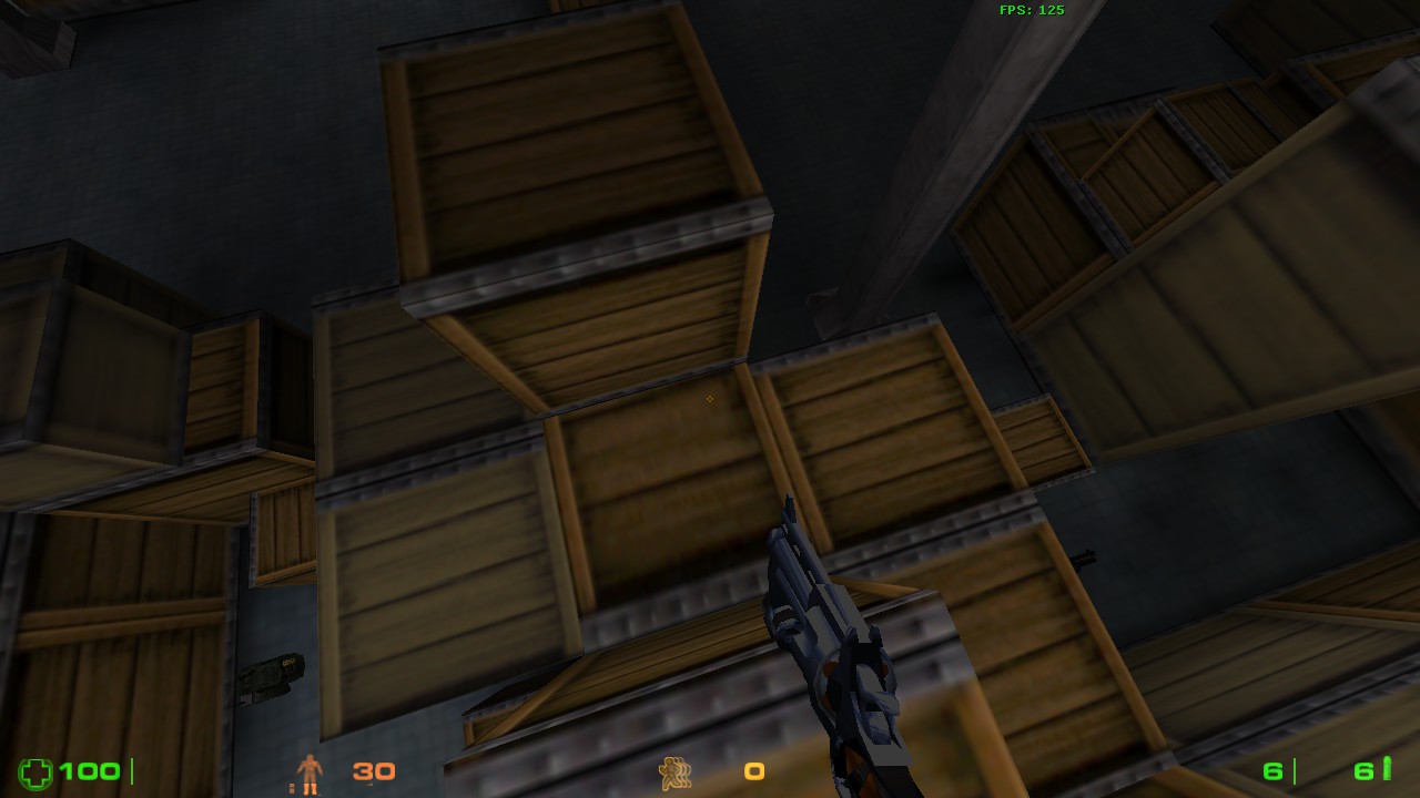 вообще карта - из прыжков состоящая, и оружие оригинально раскидано. Кстати, я думаю , до гаусса (и тем более пылесоса) вряд ли кому-то удастся добраться в процессе игры. Я не нашел арбалета, или его нет? Да он кстати и не нужен. Тут "у кого дробовик - тот и рулит".