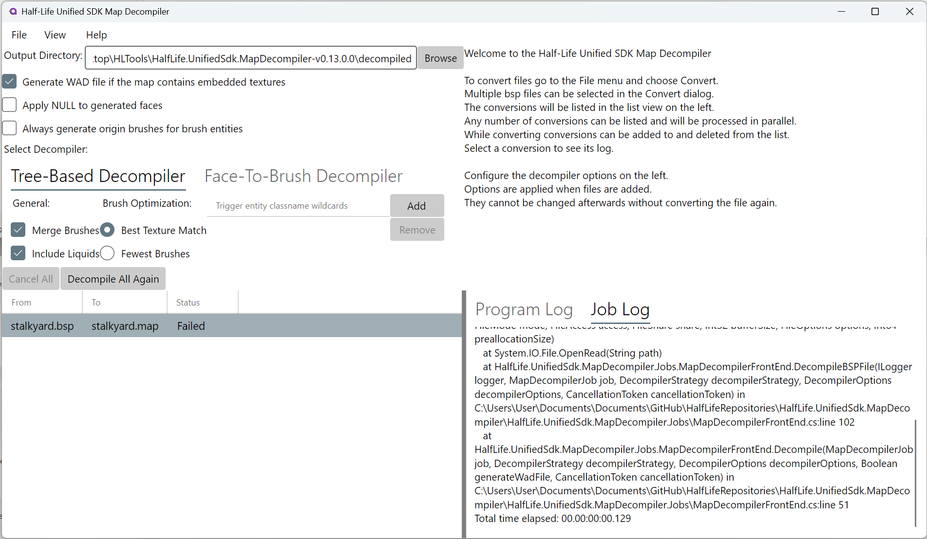 Half-Life Unified SDK Map Decompiler - это мощный инструмент, используемый для декомпиляции файлов Half-Life 1 BSP версий 29 и 30. Он выделяется среди других подобных декомпиляторов, поскольку написан на C#, что делает его исходный код более доступным и легким в обслуживании. Также поддерживаются оригинальные файлы Half-Life Alpha 0.52 BSP.