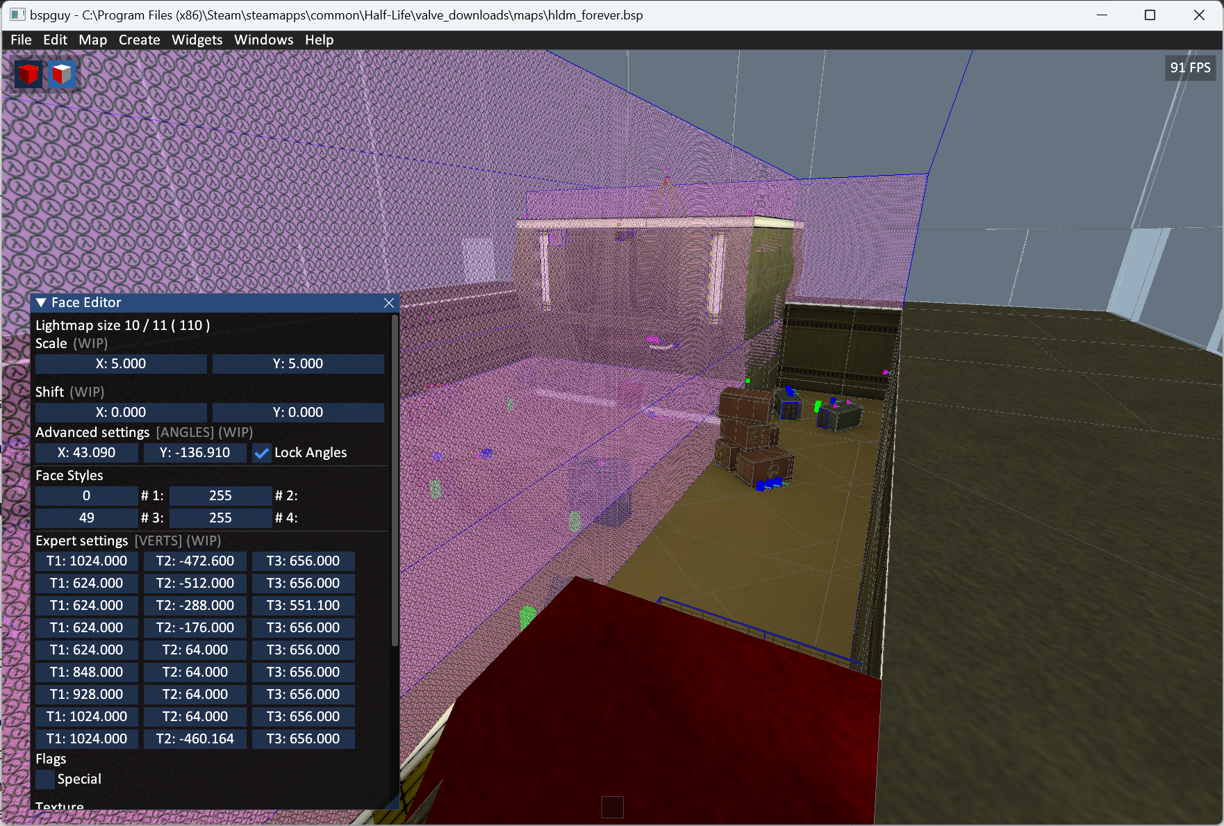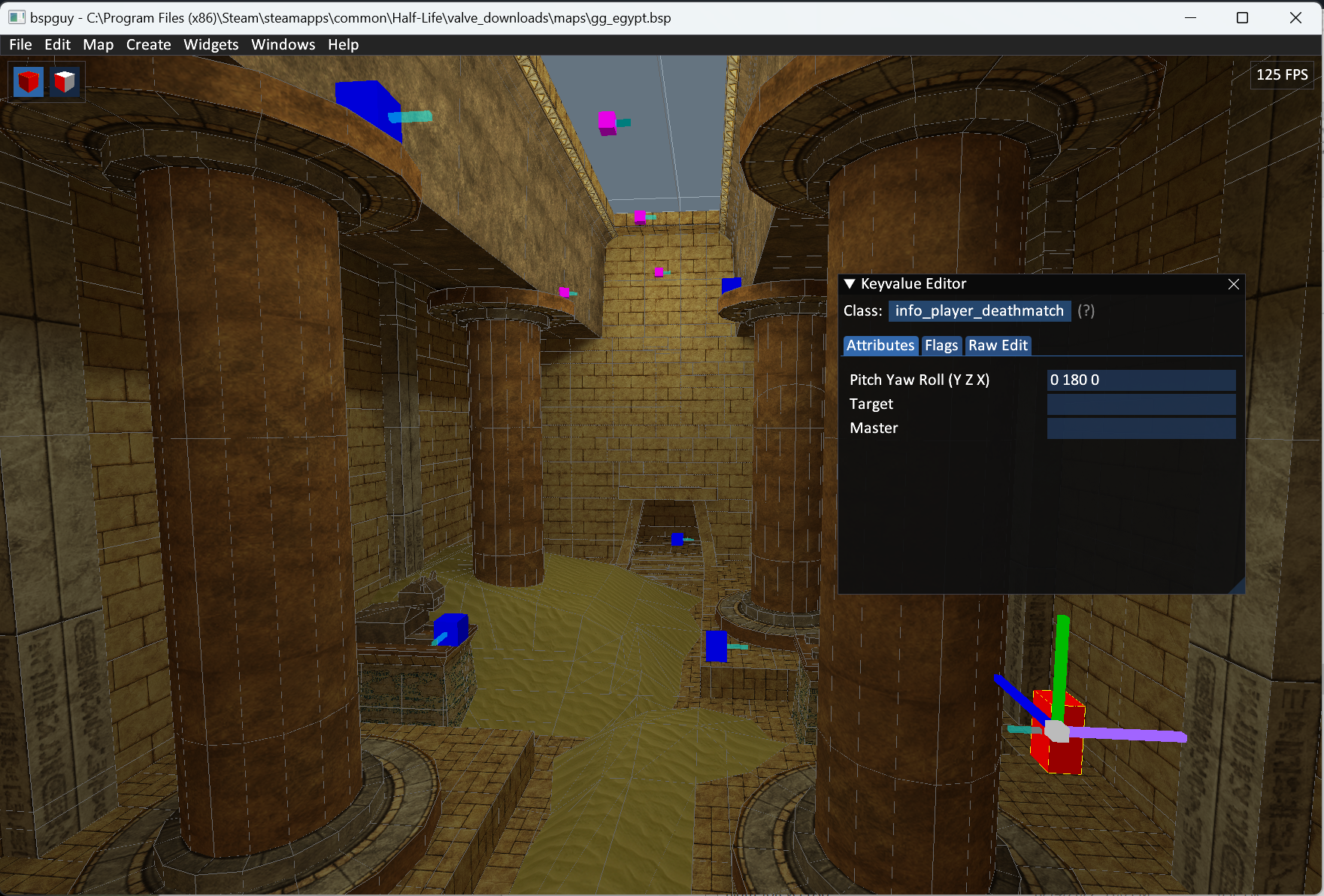 Для просмотра BSP файла наобходимо указать путь к Half-Life каталогу (valve), затем перенести BSP файл из окна проводника в окно редактора. Для редактирования энтити необходимо добавить FGD файлы в настройках.