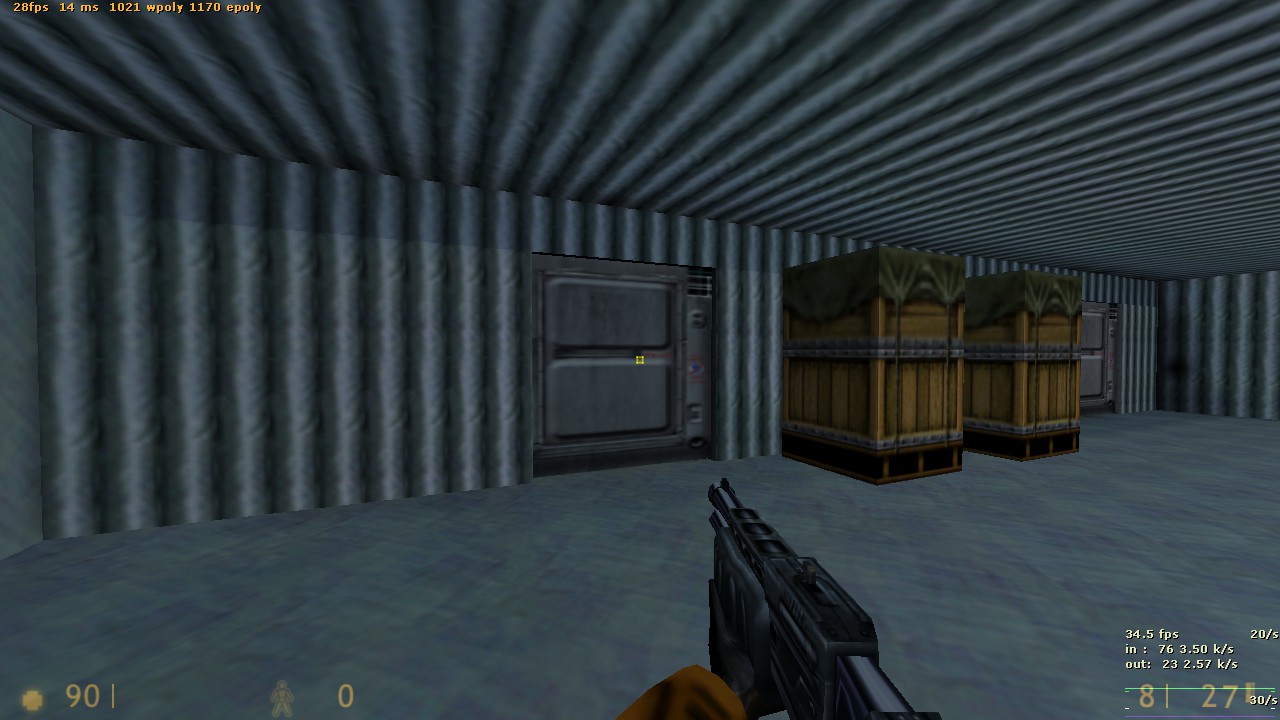 Насчет оптимизации. Соприкасающиеся браши делятся на несколько частей, одна часть - одна единица wpoly. Для примера, каждый из ящиков соприкасается с полом и стенами, тем самым деля его на части. Советую отодвинуть ящики на 1 юнит от стен и полов, заметно не будет, а wpoly уменьшится. Вложение: