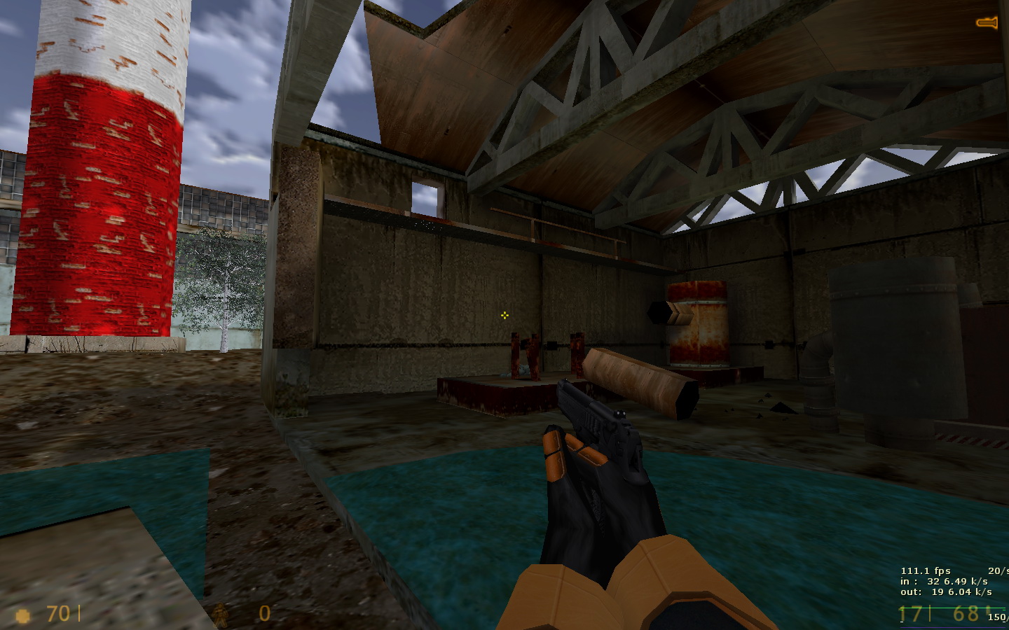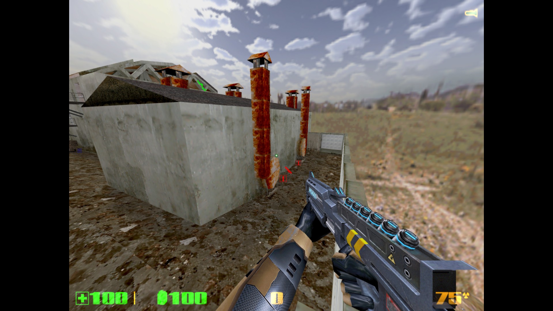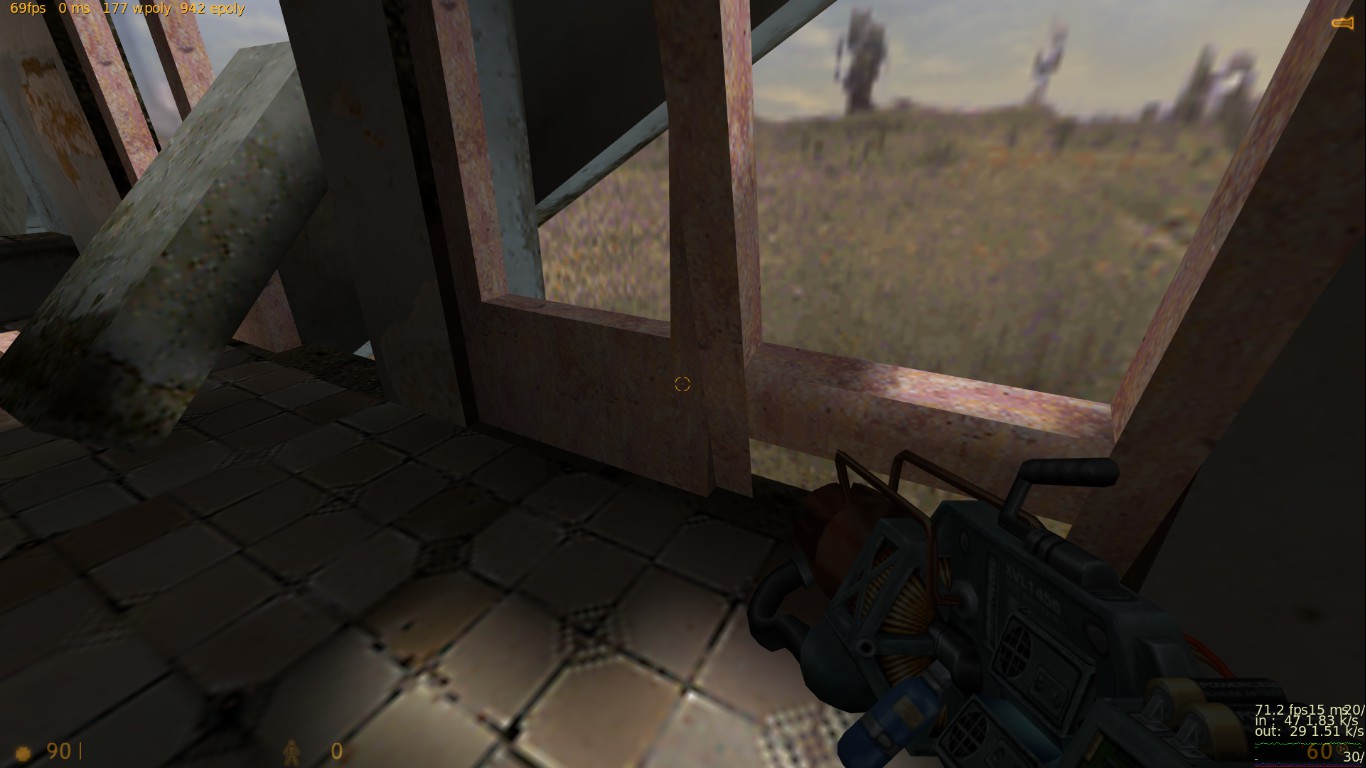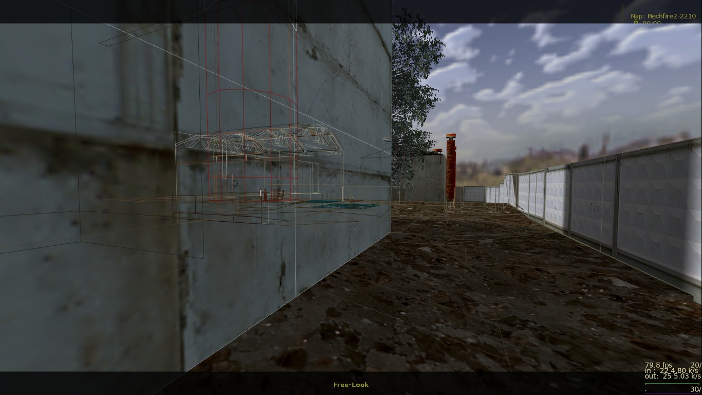 Всем спасибо! Подводим итоги тестирования. Всего тестеров было 10 человек, это из тех, кто отписал своё мнение. Идеи были учтены, обдуманы и обработаны. Отвечу на последние комментарии. 1) Земля сделана умышленно "корявой", объясню почему. Первое, это "разбавить" унылый однообразный вид плоской-преплоской земли на других картах - возьми хотя бы мой stalevar. Как будто катком прошлись. Из-за этого на новой карте почва на половине площади сделана неровной. Второе - чтобы не так просто было попадать из автомата (он наверняка будет здесь самым популярным), потому что при стрейфе игрок будет двигаться по холмам ещё и вверх-вниз. Тем не менее, эта корявая земля выглядит не самым лучшим образом. Вся почва на карте сегодня была удалена, перерисована с нуля, и приведена к более красивому виду. 2) Производительность - это вообще бич этой карты! На ранних версиях там был полный атас. Сейчас удалось немного причесать. И всё равно какого-то фига игра прорисовывает объекты там, где не должна. Пример - как раз скриншот с видимым сквозь стены ангаром. Самая соль в том, что внутренняя обстановка центрального здания прорисовывалась даже в том случае, если находиться сбоку, а особенно - если смотреть с крыши разрушенного здания. Это все можно увидеть, если посмотреть на версию, с которой начиналась эта тема. Я пытался ограничивать видимость и прорисовку всем, чем можно - хинт-брашами, перемещением зданий, перемещением входов. Всё без толку. Отрисовано то,чего не видно. Сейчас стало получше, это как следствие п. 1 - земля была перерисована и вообще удалено всё, что ниже уровня почвы (это к слову про полигоны под картой). Но на большее, похоже, движок не способен. Архитектура карты обязывает. 3) Стены, за которыми ничего нет. Вообще-то, это задумка, обозначающая то, что за забором бывшего завода начинается пустошь, заброшенная местность (ты же читал описание?) К слову, я не единственный, кто балуется такими "обрубленными" картами. Больше всего я их видел у автора DocRock ( https://gamebanana.com/search?query=DocRock ). Вспомни хотя бы небезызвестный cliffside. Карта вообще как будто в воздухе висит. Сначала кажется необычно, но потом привыкаешь и не замечаешь этого. 4) Арбалет, лежащий на земле. Он появился там не просто так. Он призван дать адекватный ответ тому, кто засел на крыше около надписи "Слава труду" и простреливает всю площадку около трубы (да и с другой стороны центрального здания тоже). Если лезть на блоки - гарантированно попадёшь под его огонь. В данном же случае можно быстро схватить арбалет и просто снять его с крыши. И да, на самом деле на карте нет принципа "арбалет нужно заслужить". Есть другой принцип, "бери арбалет и иди на крышу". Потому что здесь на земле с арбалетом делать нечего. Вспомни deadlab, где оружие надо было ещё донести до места его оптимального применения. Вот с арбалетами тут то же самое. 5) Аптечки на крыше позволят стоять там и отжираться, а ещё это будет дополнительной плюшкой для тех, кто занимается исключительно полётами на гауссе. Как правильно сказал Nitro "кто владеет здесь гауссом - владеет всем". Чтобы ослабить эту власть, аптечки расположены исключительно на земле. По той же причине патроны к гауссу разложены по разным местам и в ограниченных количествах. 6) Арбалетные патроны на крыше гаража. Начнём с того, что туда не обязательно летать гауссом - достаточно лонгджампнуть с соседн