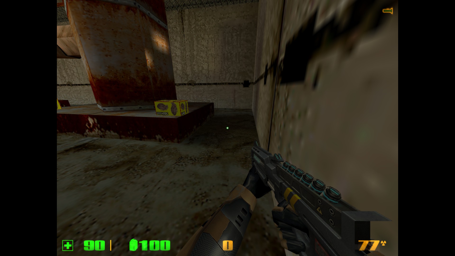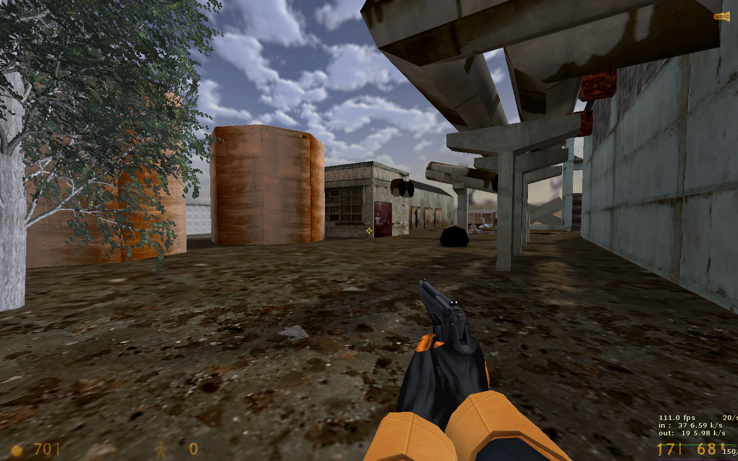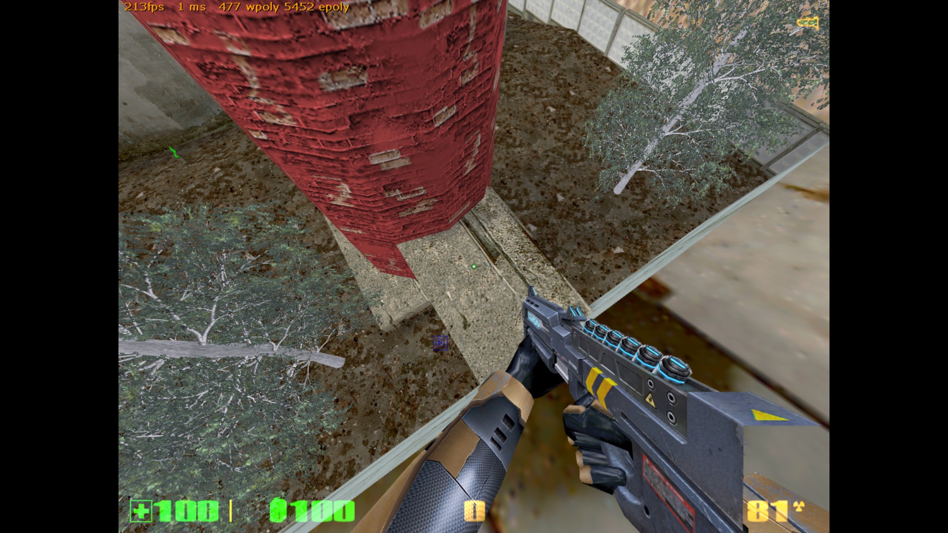 Всем спасибо! Подводим итоги тестирования. Всего тестеров было 10 человек, это из тех, кто отписал своё мнение. Идеи были учтены, обдуманы и обработаны. Отвечу на последние комментарии. 1) Земля сделана умышленно "корявой", объясню почему. Первое, это "разбавить" унылый однообразный вид плоской-преплоской земли на других картах - возьми хотя бы мой stalevar. Как будто катком прошлись. Из-за этого на новой карте почва на половине площади сделана неровной. Второе - чтобы не так просто было попадать из автомата (он наверняка будет здесь самым популярным), потому что при стрейфе игрок будет двигаться по холмам ещё и вверх-вниз. Тем не менее, эта корявая земля выглядит не самым лучшим образом. Вся почва на карте сегодня была удалена, перерисована с нуля, и приведена к более красивому виду. 2) Производительность - это вообще бич этой карты! На ранних версиях там был полный атас. Сейчас удалось немного причесать. И всё равно какого-то фига игра прорисовывает объекты там, где не должна. Пример - как раз скриншот с видимым сквозь стены ангаром. Самая соль в том, что внутренняя обстановка центрального здания прорисовывалась даже в том случае, если находиться сбоку, а особенно - если смотреть с крыши разрушенного здания. Это все можно увидеть, если посмотреть на версию, с которой начиналась эта тема. Я пытался ограничивать видимость и прорисовку всем, чем можно - хинт-брашами, перемещением зданий, перемещением входов. Всё без толку. Отрисовано то,чего не видно. Сейчас стало получше, это как следствие п. 1 - земля была перерисована и вообще удалено всё, что ниже уровня почвы (это к слову про полигоны под картой). Но на большее, похоже, движок не способен. Архитектура карты обязывает. 3) Стены, за которыми ничего нет. Вообще-то, это задумка, обозначающая то, что за забором бывшего завода начинается пустошь, заброшенная местность (ты же читал описание?) К слову, я не единственный, кто балуется такими "обрубленными" картами. Больше всего я их видел у автора DocRock ( https://gamebanana.com/search?query=DocRock ). Вспомни хотя бы небезызвестный cliffside. Карта вообще как будто в воздухе висит. Сначала кажется необычно, но потом привыкаешь и не замечаешь этого. 4) Арбалет, лежащий на земле. Он появился там не просто так. Он призван дать адекватный ответ тому, кто засел на крыше около надписи "Слава труду" и простреливает всю площадку около трубы (да и с другой стороны центрального здания тоже). Если лезть на блоки - гарантированно попадёшь под его огонь. В данном же случае можно быстро схватить арбалет и просто снять его с крыши. И да, на самом деле на карте нет принципа "арбалет нужно заслужить". Есть другой принцип, "бери арбалет и иди на крышу". Потому что здесь на земле с арбалетом делать нечего. Вспомни deadlab, где оружие надо было ещё донести до места его оптимального применения. Вот с арбалетами тут то же самое. 5) Аптечки на крыше позволят стоять там и отжираться, а ещё это будет дополнительной плюшкой для тех, кто занимается исключительно полётами на гауссе. Как правильно сказал Nitro "кто владеет здесь гауссом - владеет всем". Чтобы ослабить эту власть, аптечки расположены исключительно на земле. По той же причине патроны к гауссу разложены по разным местам и в ограниченных количествах. 6) Арбалетные патроны на крыше гаража. Начнём с того, что туда не обязательно летать гауссом - достаточно лонгджампнуть с соседн