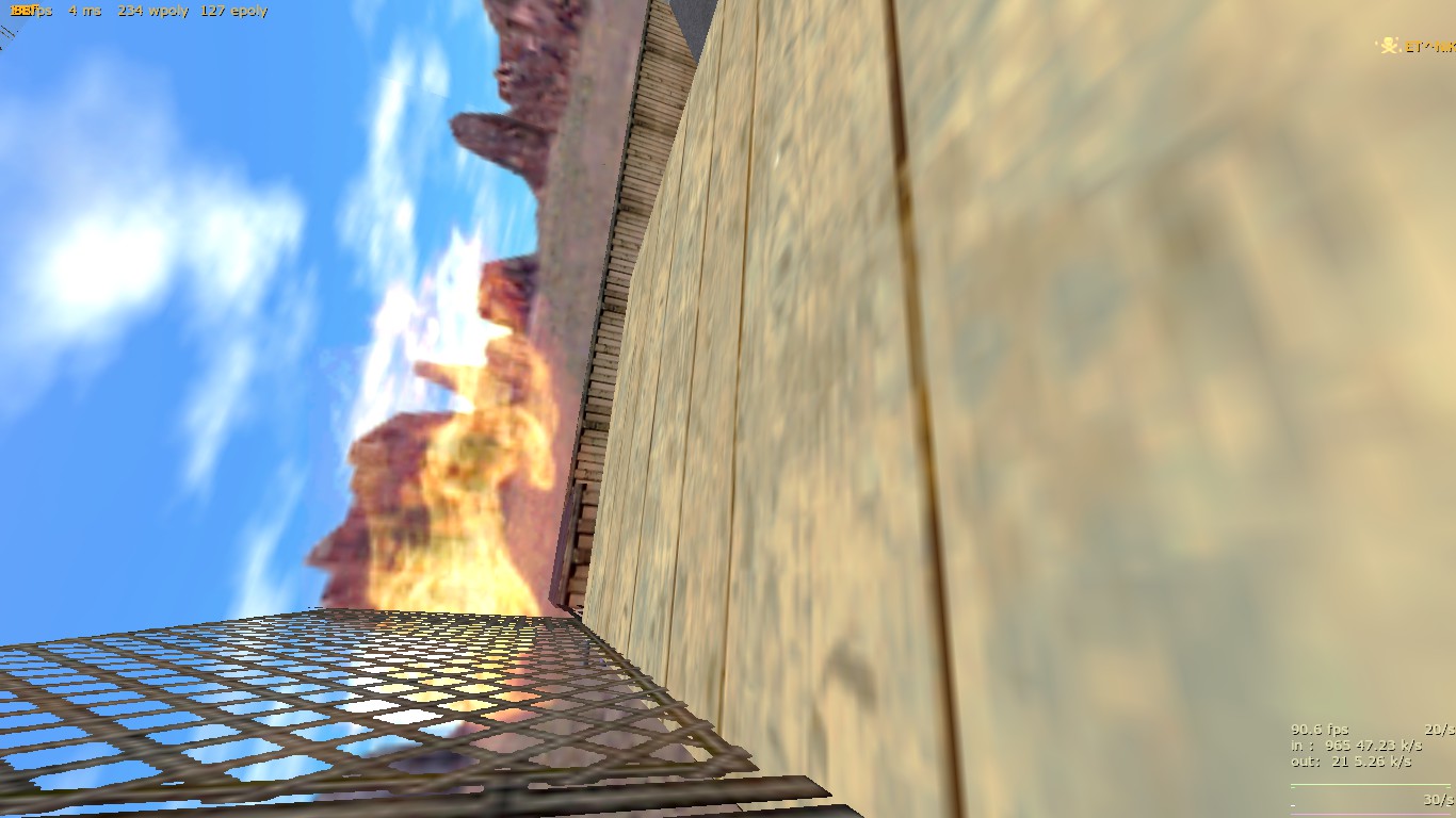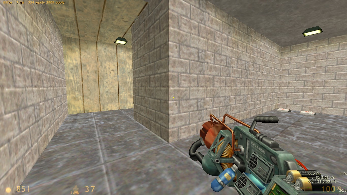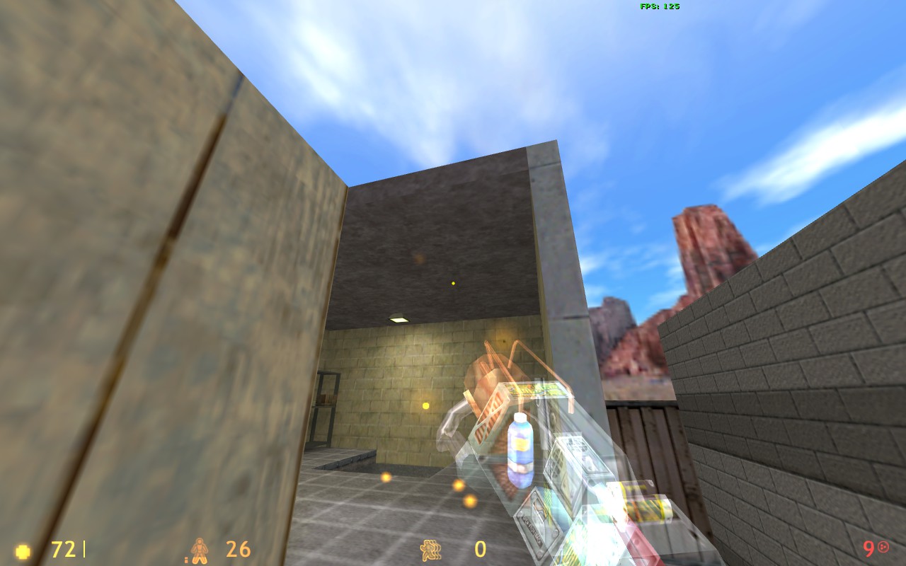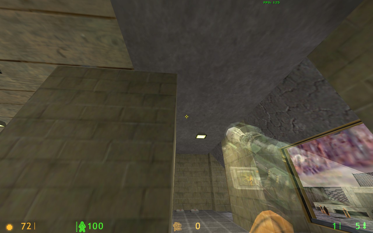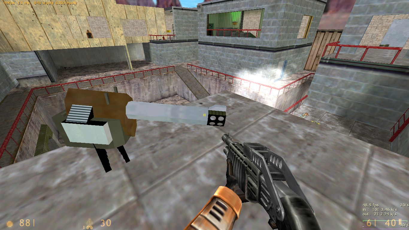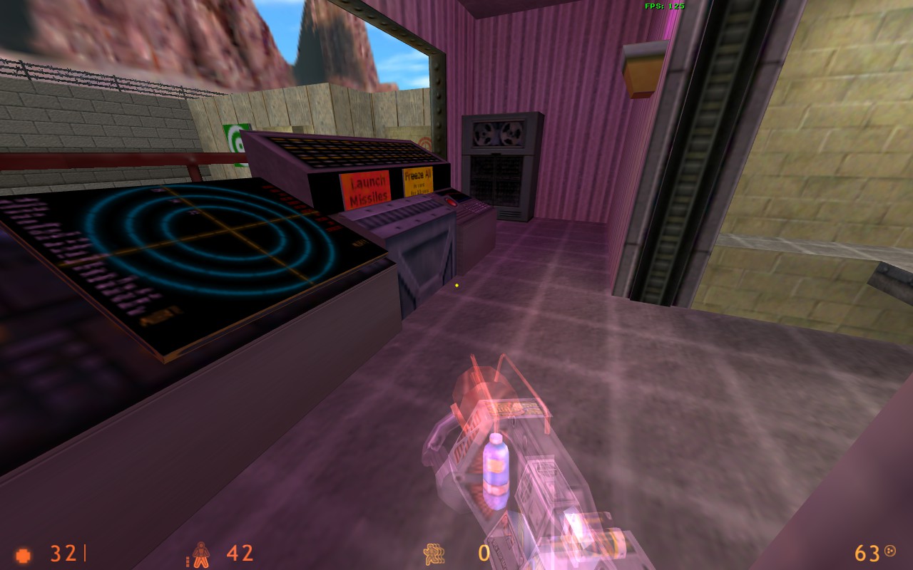 Спасибо за комментарии! Скриншот 1. На самом деле стены - не светящиеся текстуры! Светятся только текстуры ламп. Я хз, почему они освещают не только вниз, но еще и в стороны. Может, стоит уменьшить число отражений света, или убавить свет ламп, потемнее. Текстуры Кросфайра - ну да, теоретически можно бы их поменять. Поищу что-нибудь подходящее. Скриншот 2. Пересекающиеся браши - поправлю. Скриншот 3. Видел, но исправить так и не сумел. Может быть, действительно стоит всё в горы обстроить?... Скриншот 4. Огонь тоже видел, но увы - не умею делать спрайты, "стоящие всегда вертикально". Как изготовить такой спрайт? Скриншот 5. Пушкой можно управлять не только отсюда, но и из секретной комнаты, сделано в стиле 6000_6v6. Вообще - по ходу игры мало кто стреляет из стационарных пушек?.. Скриншот 6. А вот это верно, надо что-то придумать  Скриншот 7. Я так понял - нигде не видно пламени? Не видел такого, надо проверить. Еще баги : -- если выключить свет в комнате охраны, видно свет из пола, этого быть не должно. Там в полу func_ объект. Выставил все Lightflags правильно - но свет все равно есть. -- дверь, закрывающаяся при ракетном ударе в туннеле, не убивает игрока, если он собой блокирует её. А если он блокирует собой створки окон, закрывающиеся снизу вверх, то вся механика всех дверей вообще ломается, получается бардак. Поработаю нажд этим. Еще хотелось бы услышать мнения насчёт производительности карты, r_speeds, fps, "тормозов" в конкретных местах.
