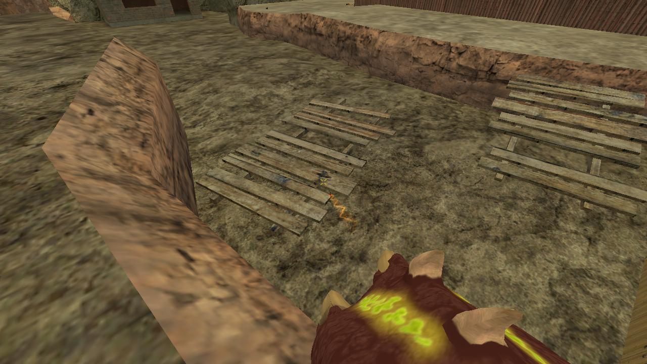 Побегал. Раскиданные респавны и оружие - уже хорошо. Нашел несколько багов: 1) Если встать примерно так, как на скриншоте, и стрелять мухами, звук такой, как будто мухи плюхаются в воду! О_о! (иногда не получается с первого раза): Вложение: