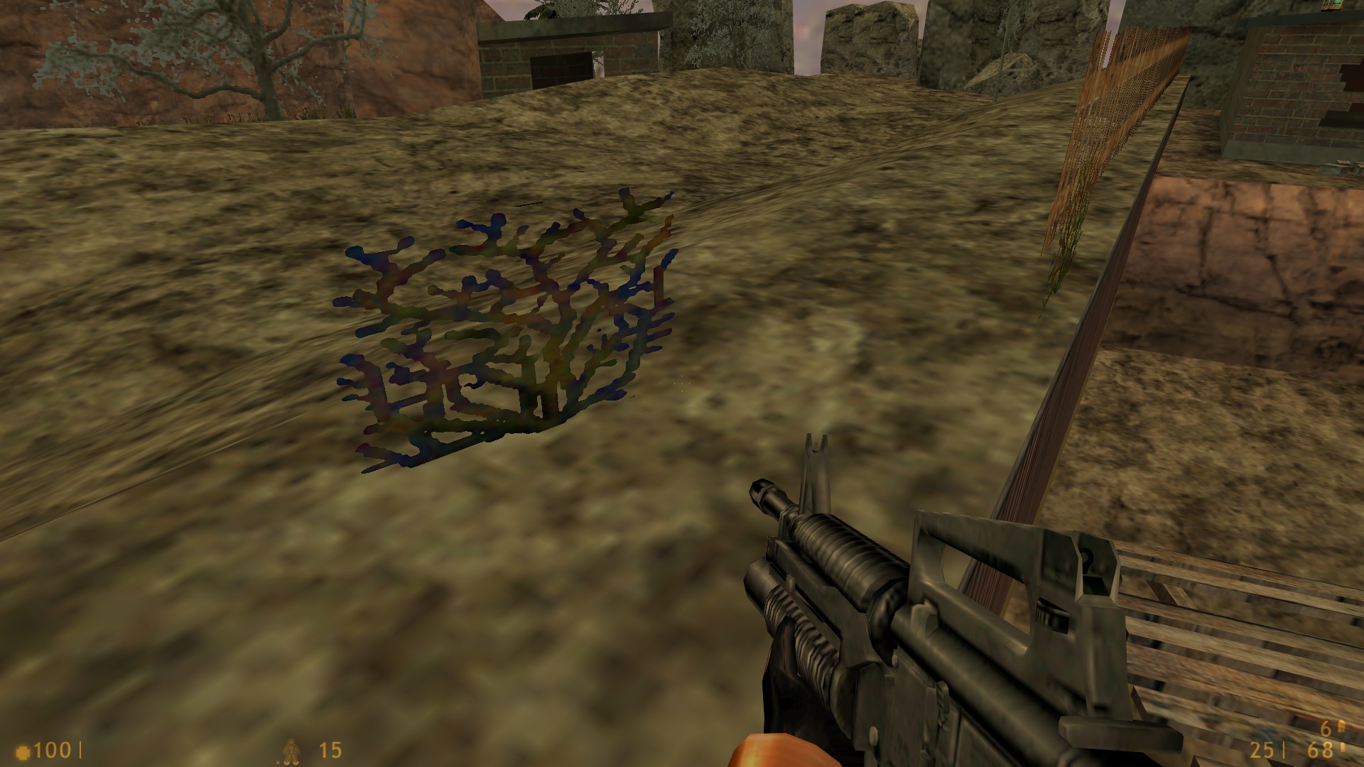 Побегал. Довольно оригинальный пейзаж. По крайней мере, отличается от "стандартных" "квадратных стен". Скалы и осколки очень хорошо раскрашены. Первым желанием было перепрыгнуть низкий заборчик, ибо wireframe показал там много разных штук. Облом, не получилось. Слазил в туннель, понял, что он реализован как на entrance (уходит в никуда). Вызывают сомнения деревянные лестницы, и рассыпанные кирпичи - надо ли столько полигонов? Хотя хз, я не нашел больше 1100 полигонов где-либо. (ну кроме просмотра с камеры-там 1600). Если решишь лестницы и кирпичи все же оставить - сделай, чтоб валяющаяся лестница и рассыпанные кирпичи всё-таки попадались под ноги игрокам, а то получается, что они проходимые и простреливаемые. Ещё - не смог залезть в комнату с двумя разбиваемыми зеленоватыми стеклами, или плохо искал вход. Может, это в стиле FastAndFaster сделано? Но в целом карта отличная, мне понравилась. Если еще найду чего - выложу скриншот.