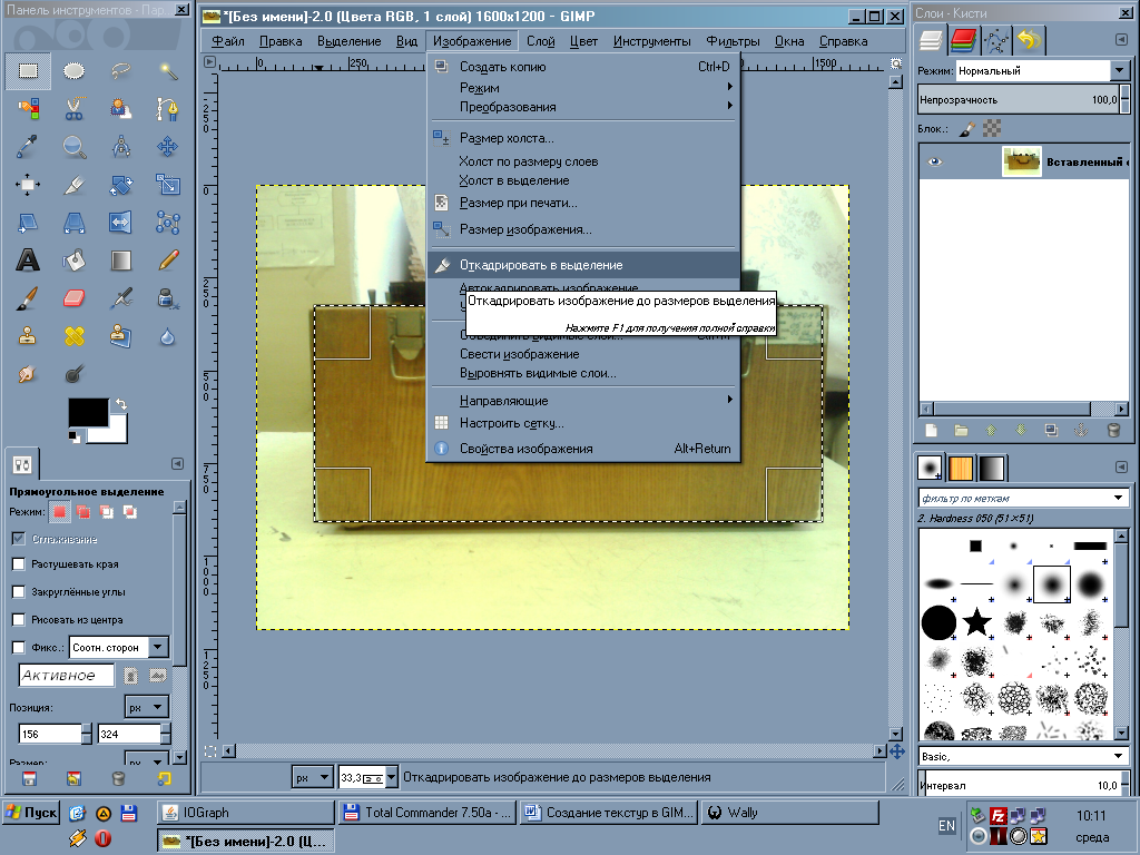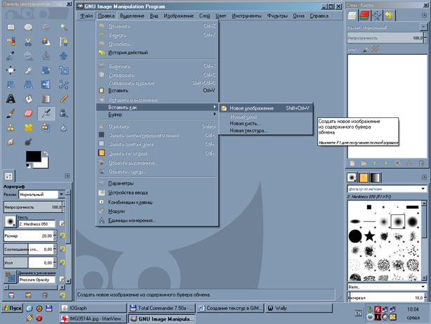 После того, как все снимки сделаны, открываем GIMP, копируем фотографию из окна просмотрщика (использовался Irfan View) и вставляем ее как новое изображение (также можно сразу нажать Ctrl-Shift-V):