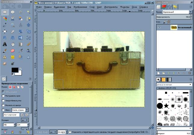 Затем выбираем инструмент «Прямоугольное выделение» и проводим выделение строго по границам объекта, вот так: