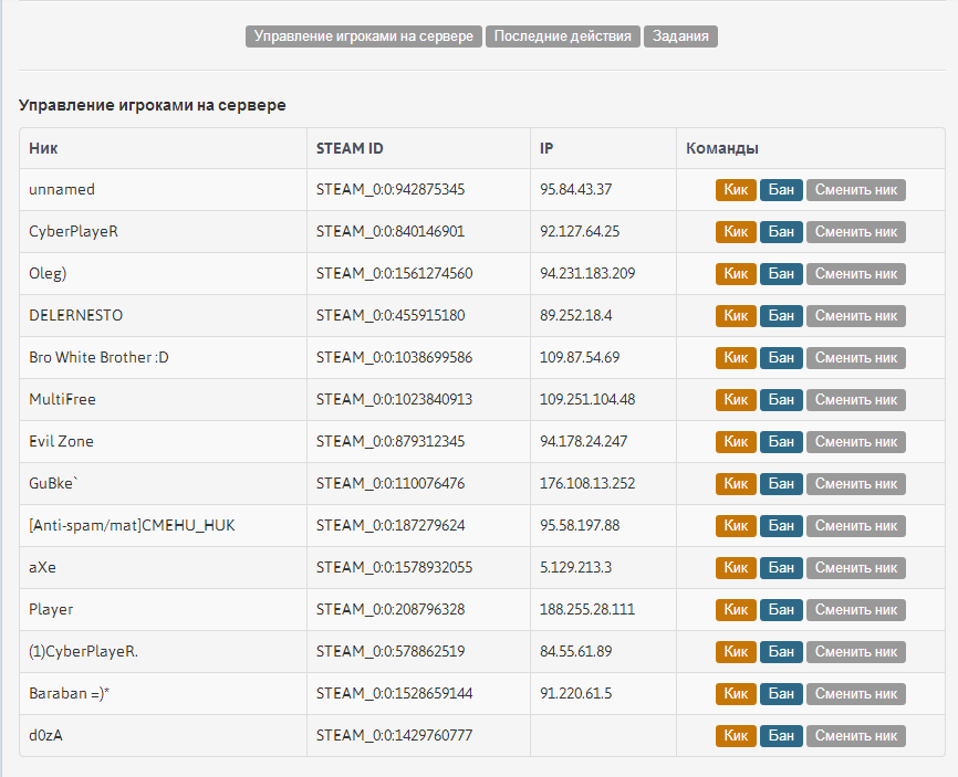 Всем привет Проблемы с "управление игроками" CS 1.6 1) Очень часто у последнего игрока нету айпи 2) На сервере к примеру 20 игроков , выполнил "статус" пишет 20 игроков, обновил страницу , там где управление игроками, всего 14-16, бывает и меньше