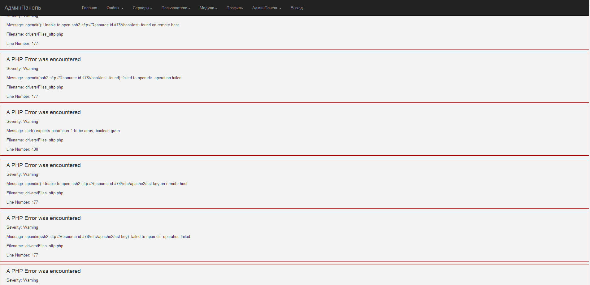 Кстати сейчас ошибок вроде нет, но когда я прописываю данные от ftp и ssh и нажимаю Сохранить, то он долго думает и переходит на чистую страницу.
