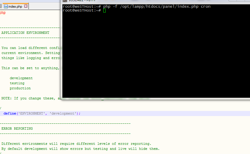 root@WeSTHost:~# php -f /opt/lampp/htdocs/panel/index.php cron! <!DOCTYPE html> <html lang="en"> <head> <meta charset="utf-8"> <title>Error</title> <style type="text/css">