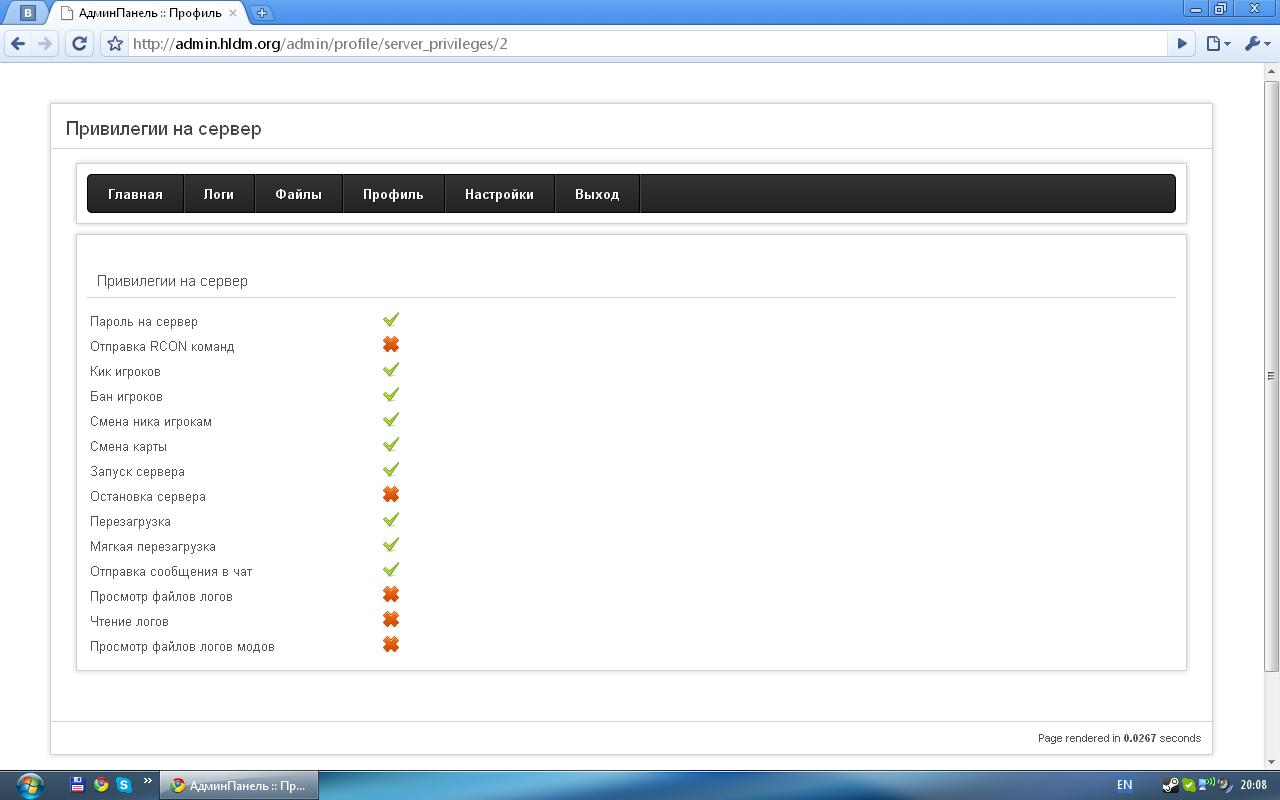 Изменения: [+] Редактирование привилегий пользователей админом; [+] Редактирование пользователей админом; [+] Просмотр своих привилегий на отдельные серверы; [+] Чтение файлов логов; [fix] Режим авторизации изменен, хеш пароля не хранится в куках, теперь если ваши куки будут украдены, ими нельзя будет воспользоваться; [fix] Удобное редактирование привилегий; [fix] Исправлены найденные баги с шаблонами; [fix] Изменено отображение даты;