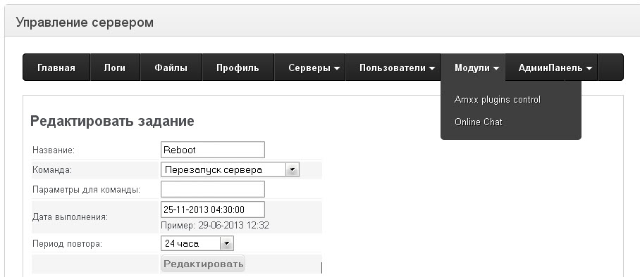 Этим самым мы "говорим" панели, что нужно запустить модуль под названием cron.
