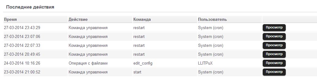 Что касается самопроизвольных рестартов, во время каждого рестарта пишется лог консоли.