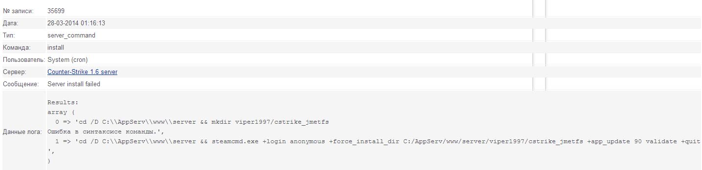 Если серверу не удалось установиться, ошибка связи со Steam серверами, что-то не получилось, то панель выполнит повторную установку.