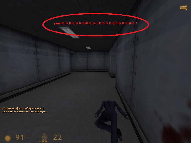 Нормальное отображение кириллических символов худе есть только в Bugfixed & Improved HL Release. Можешь поставить английский язык вызвав меню командой amx_langmenu.