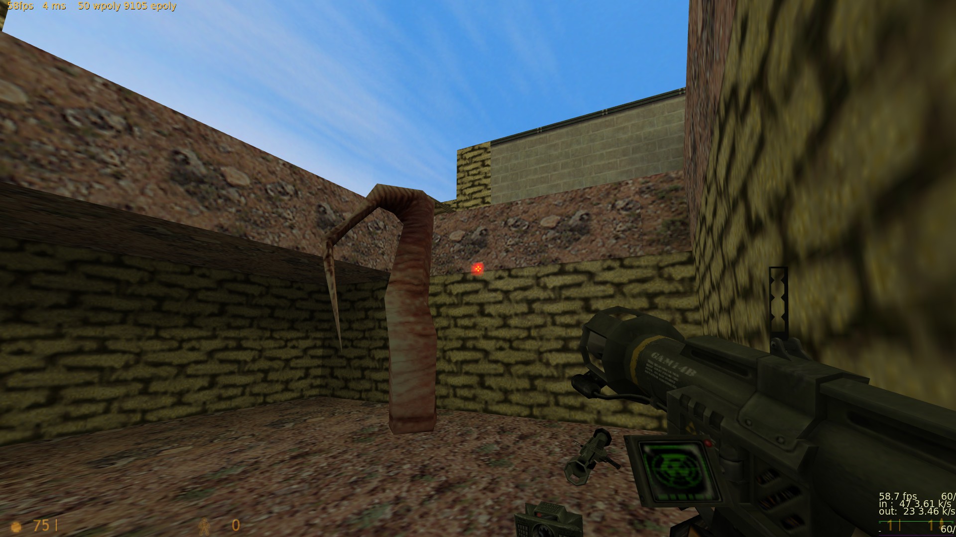 xbounce.bsp - очень старая карта, кажется, была первой на которой ХЛ ДМ пришел ко мне:) (да-да, не кросс:)) Карта очень динамичная. Вполне можно играть от 2х игроков. Мне кажется, что она неплохо подойдет для GunGame сервера.