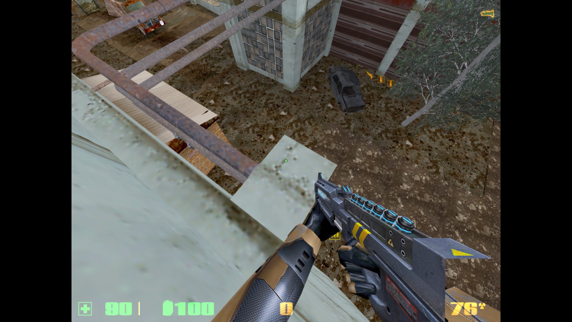 Комментарий к файлу: Вот интересный уступ, к которому можно дойти по трубам. Может, положить сюда что-нибудь ценное? Батарейку, аптечку, гауссклип или ёщё чё?