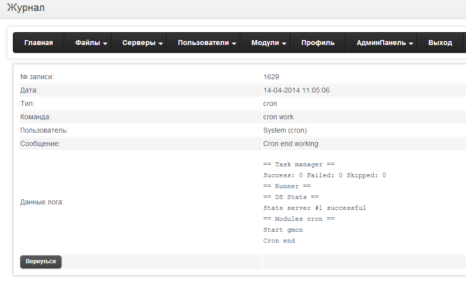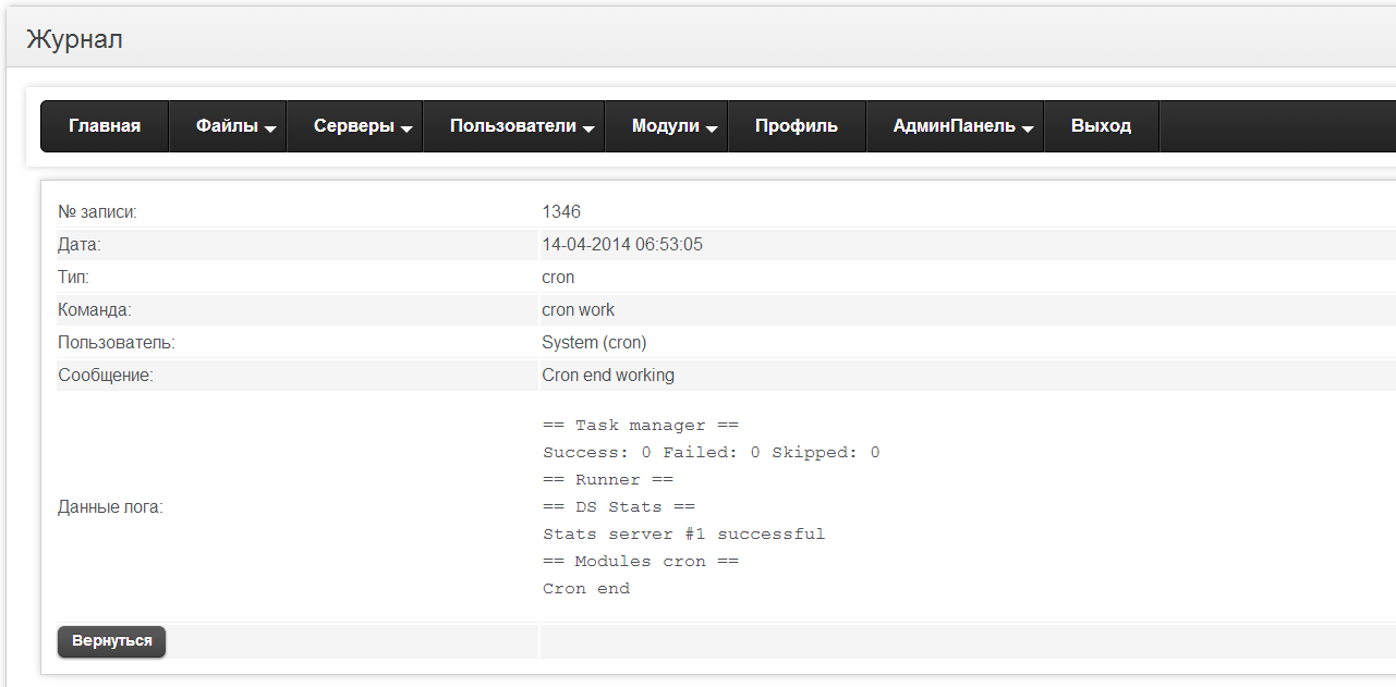 Не тот лог. Это лог крона. Мне нужен лог запуска, когда вы его из панели сами запускаете.