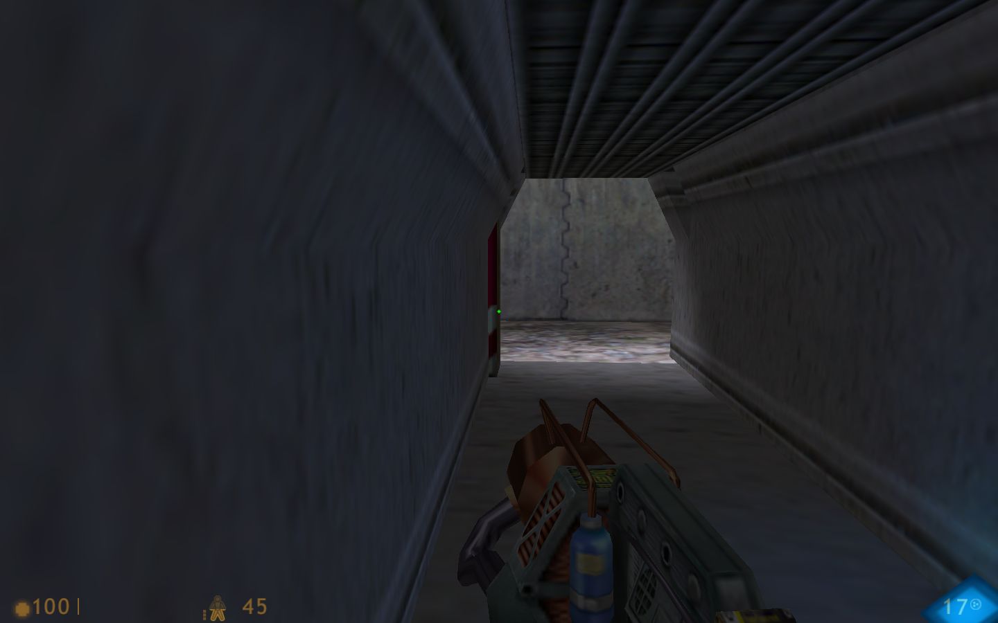 У меня тоже этой проблемы нет. Бегал-прыгал-стрелял по 20 минут на каждой карте. Непростреливаемых ламп не нашёл. Но не исключено что какую-то, всё-же, проморгал. Визуально понравилась больше карта Лео, т.к. более затемнённая. Кое-что, да и нашёл: 1. Дыра. Вложение: