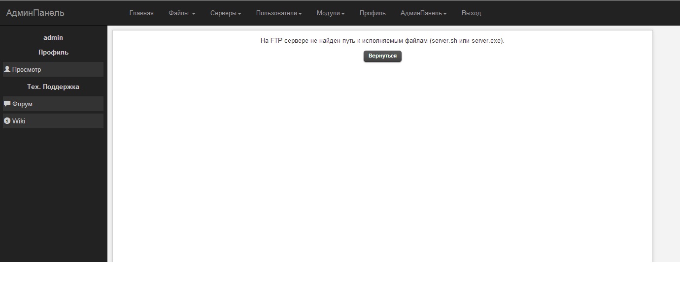Дабы чтобы ты понял о чем я, лови 2 скрина 1. С путем, где лежит файл server.exe (папка пустая, файл там один) 2. Ответ панели на попытку ввести данные по фтп (IP, логин и пасс)