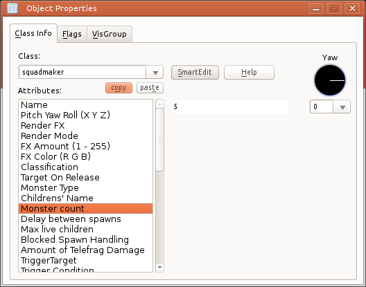 squadmakerЗдесь нам нужно задать тип монстров, их количество и цель, для этого переходим в параметры entity и выставляем слудующие значения: