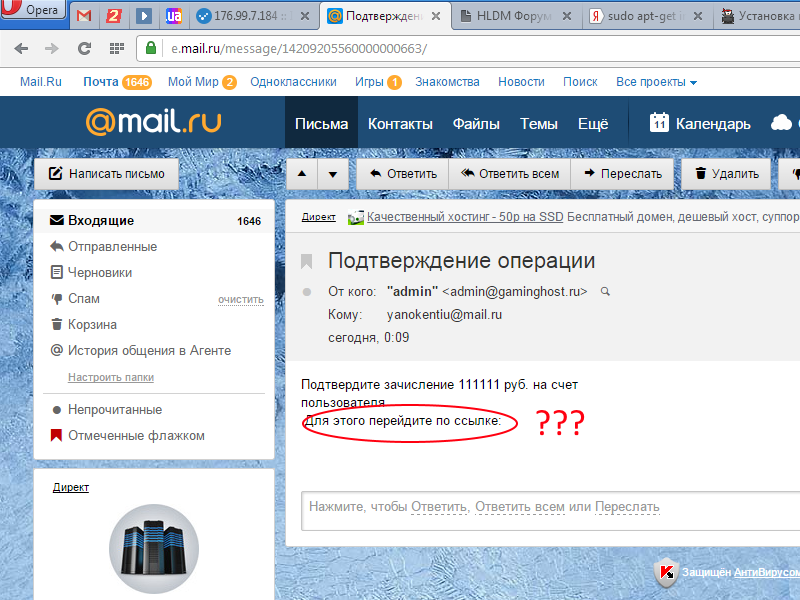 вопрос по поводу Подтверждение операции нет ссылки подтверждения?