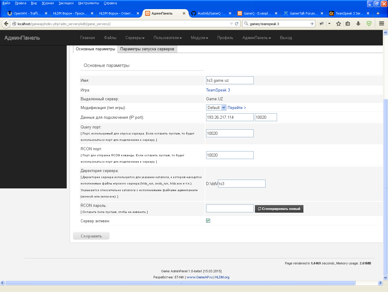 Попробовал как вы написали сменить код игры на teamspeak3 но сервер все равно оффлайн, даже при запуске он пишет не удалось запустить сервер, хотя сервер запускается, после того как прописал правильный порта квери при попытке снова его запустить пишет такой сервер уже запущен...